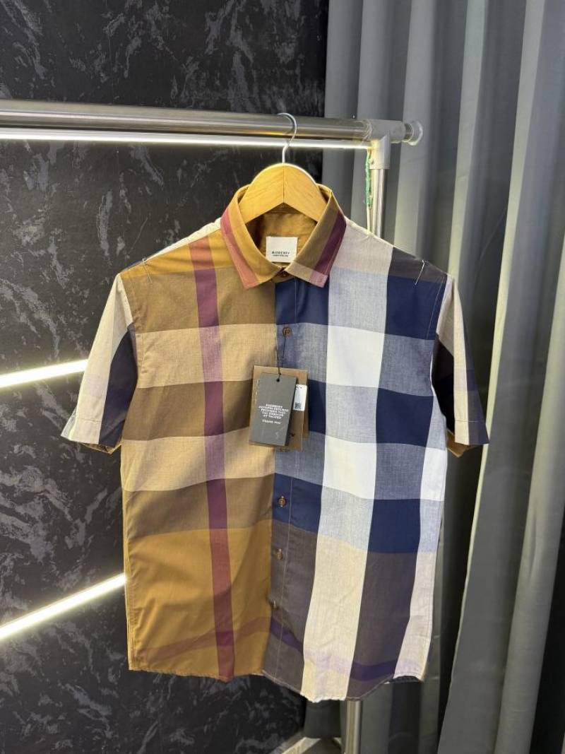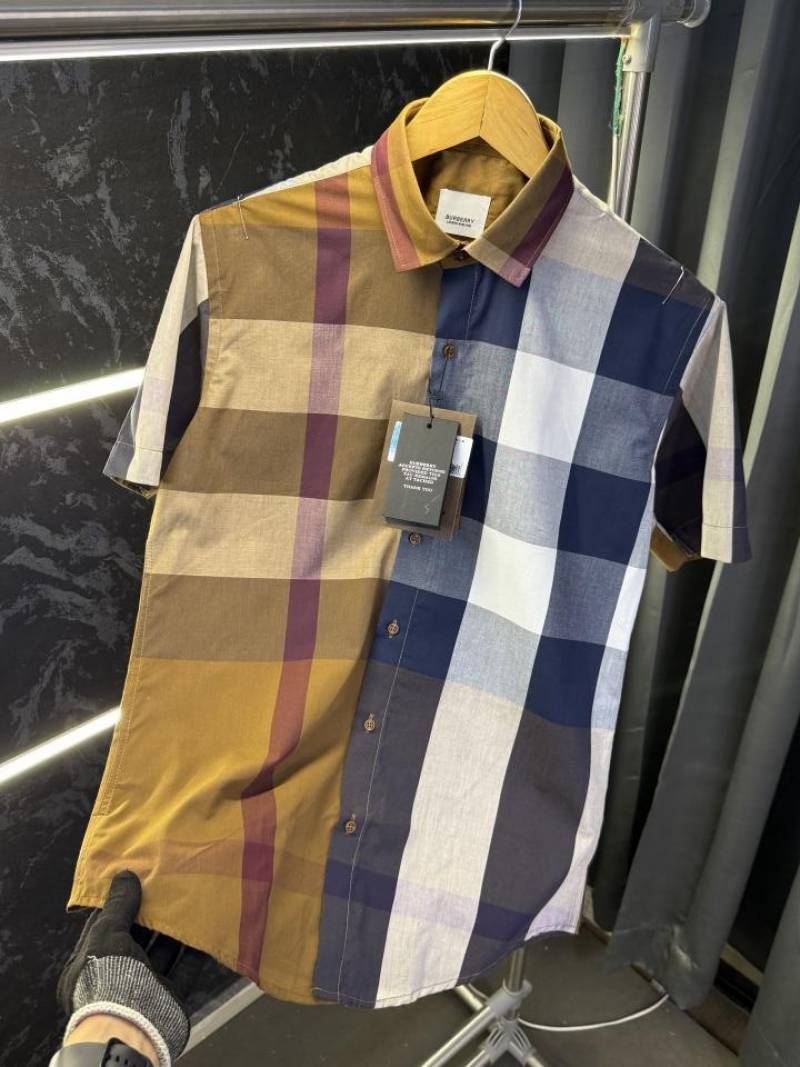 Burberr y Checks Half sleeve Store article Shirt with Original box ( Brown Blue )