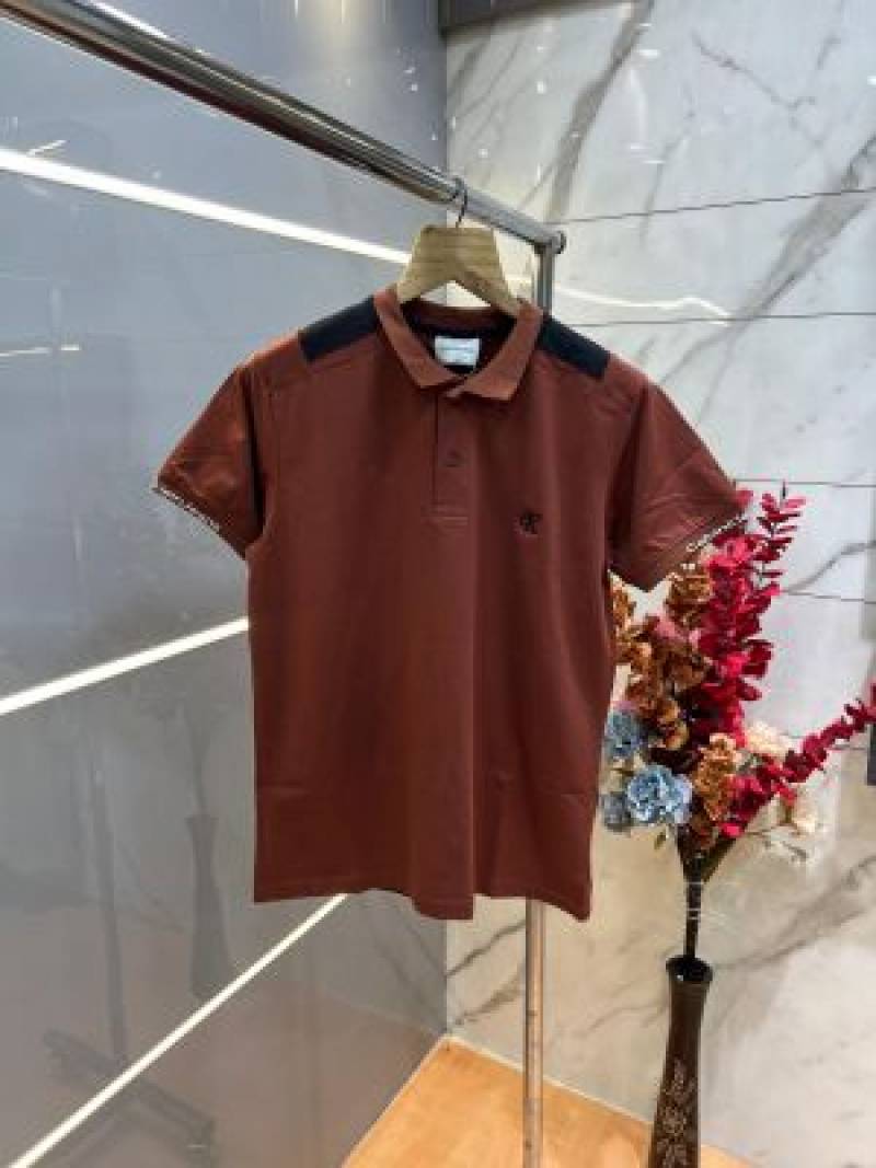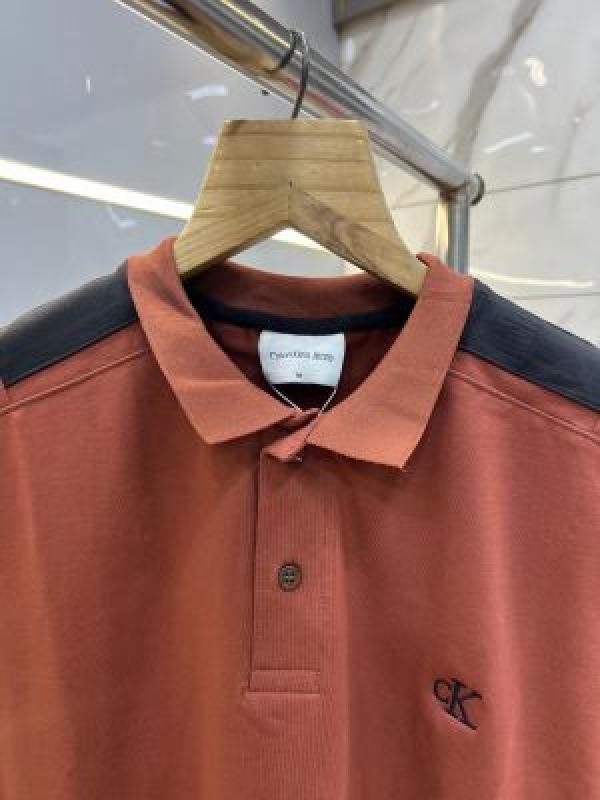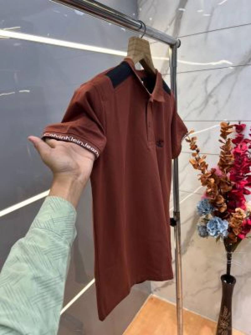 Calvin Klei n Rust Premium Imported 240 GSM Interlock Lycra Fabric Polo Tshirt with Shoulder Design and Embroidered Logo 4013