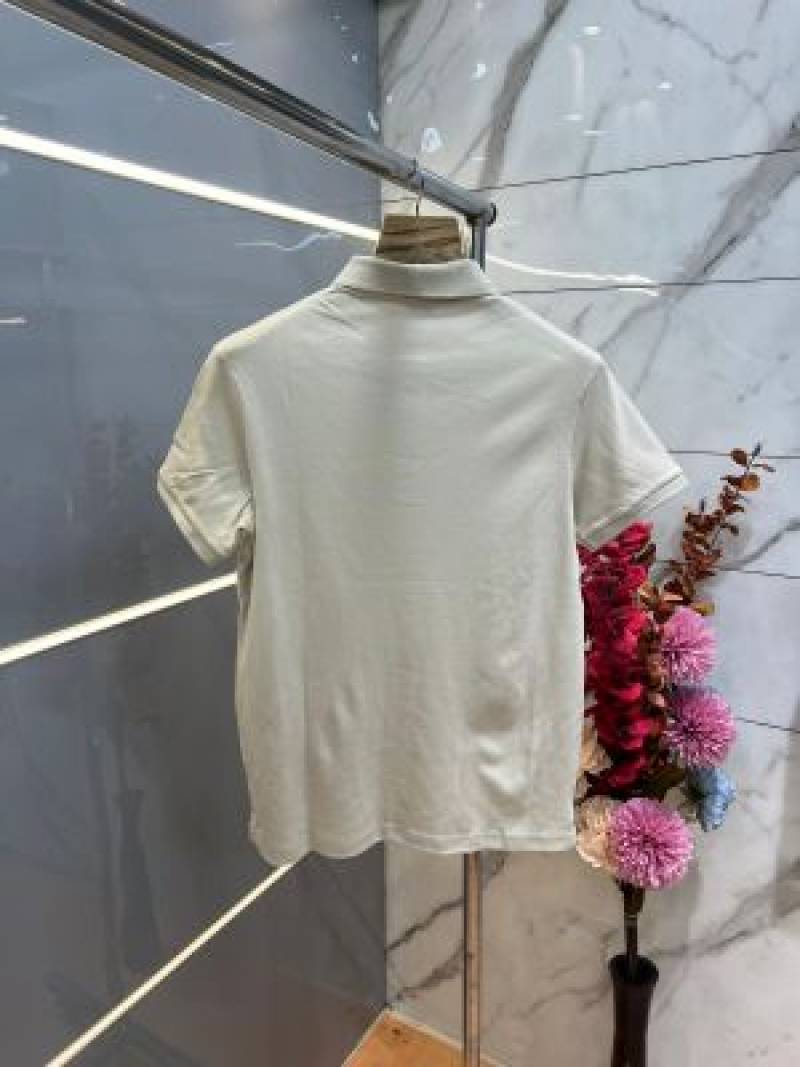 Burberr y Cream Premium Imported 240 GSM Interlock Lycra Fabric Polo Tshirt with Collar Design and Emboss Logo 4055