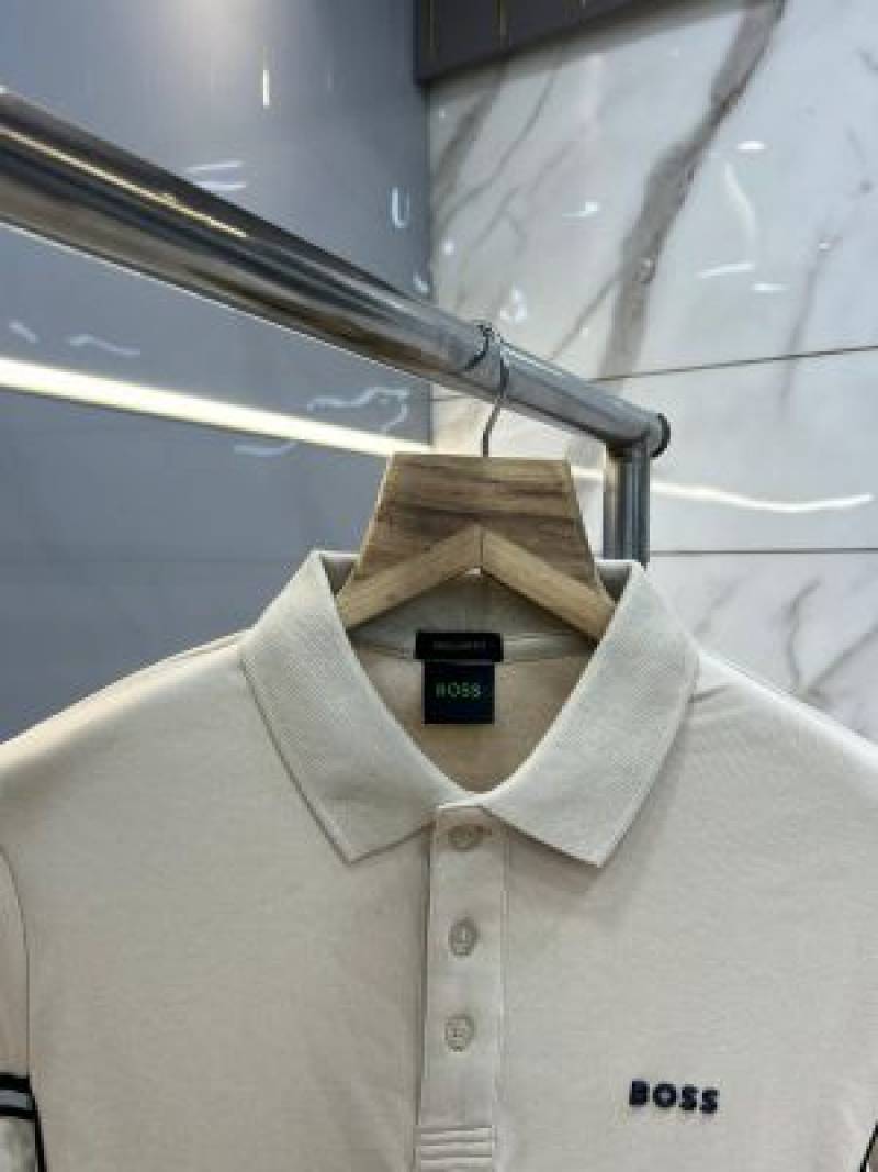 Hugo Bos s Premium Imported 240 GSM Interlock Lycra Fabric Polo Tshirt with Collar Design and Emboss Logo 4002