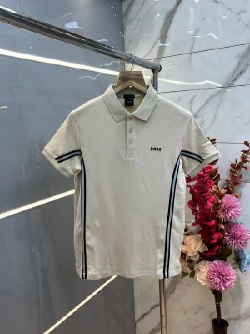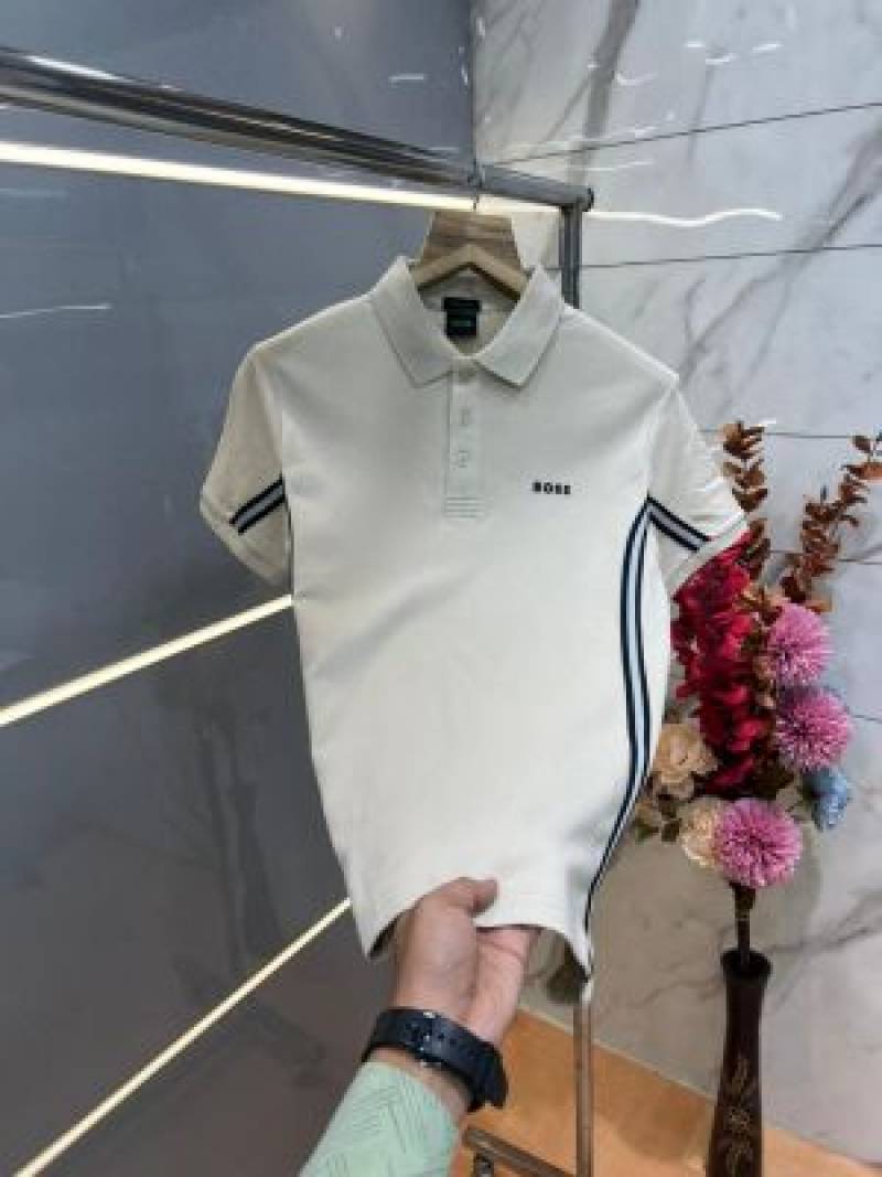 Hugo Bos s Premium Imported 240 GSM Interlock Lycra Fabric Polo Tshirt with Collar Design and Embroidered Logo 4005