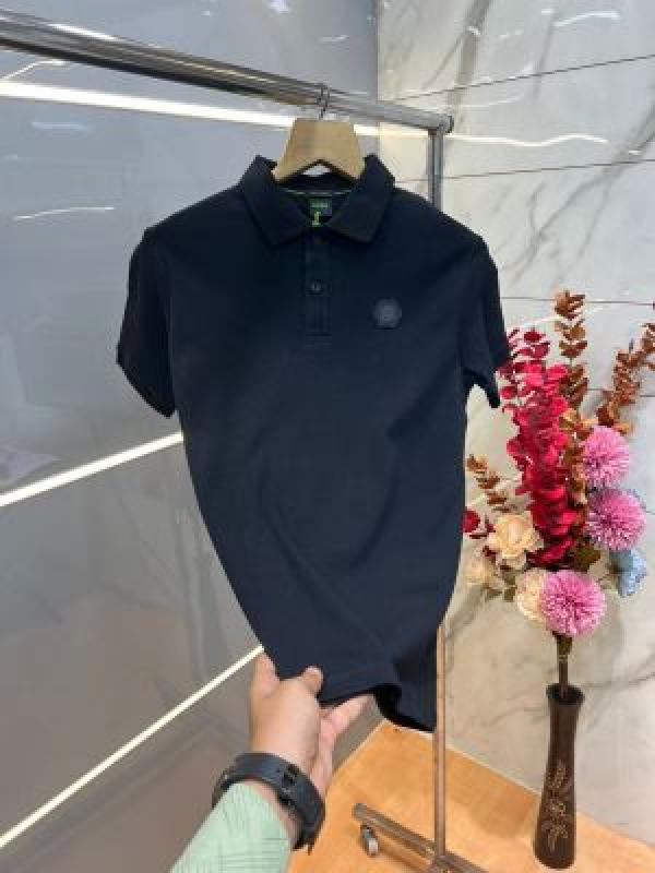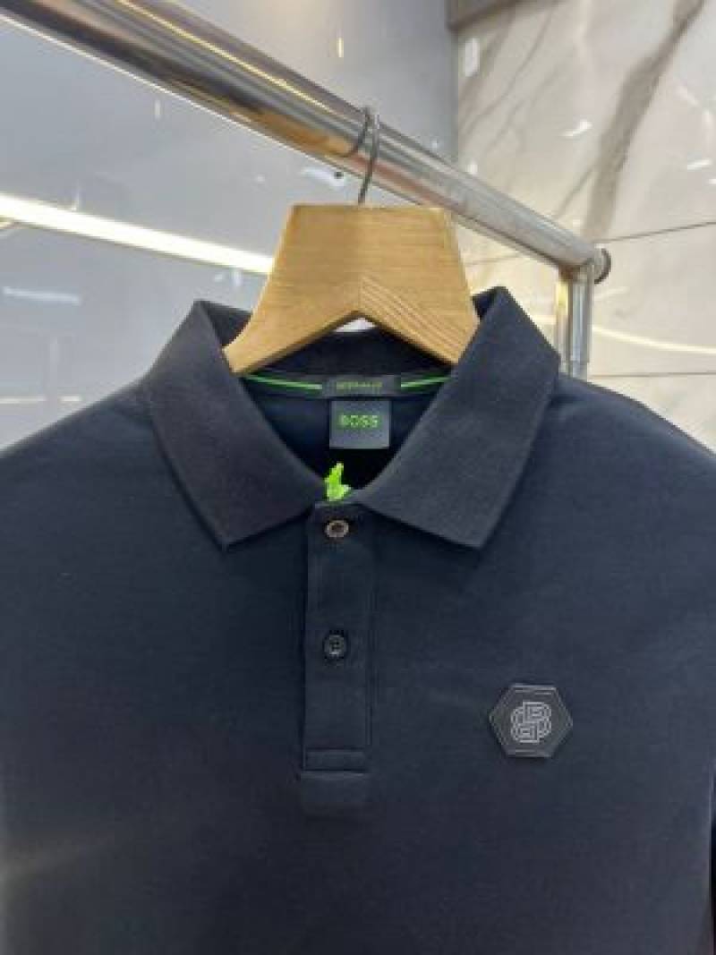 Hugo Bos s Premium Imported 240 GSM Interlock Lycra Fabric Polo Tshirt with Collar Design and Emboss Logo 3998