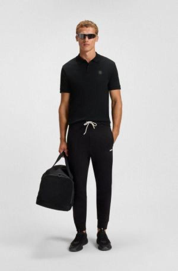 Hugo Bos s Black Premium Imported 240 GSM Interlock Lycra Fabric Polo Tshirt with Patch Logo 3964