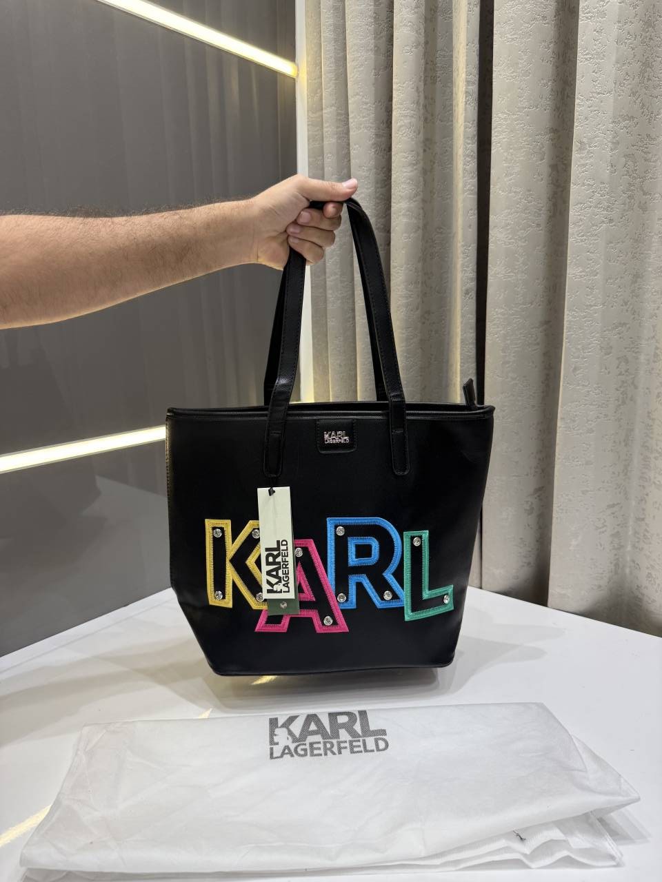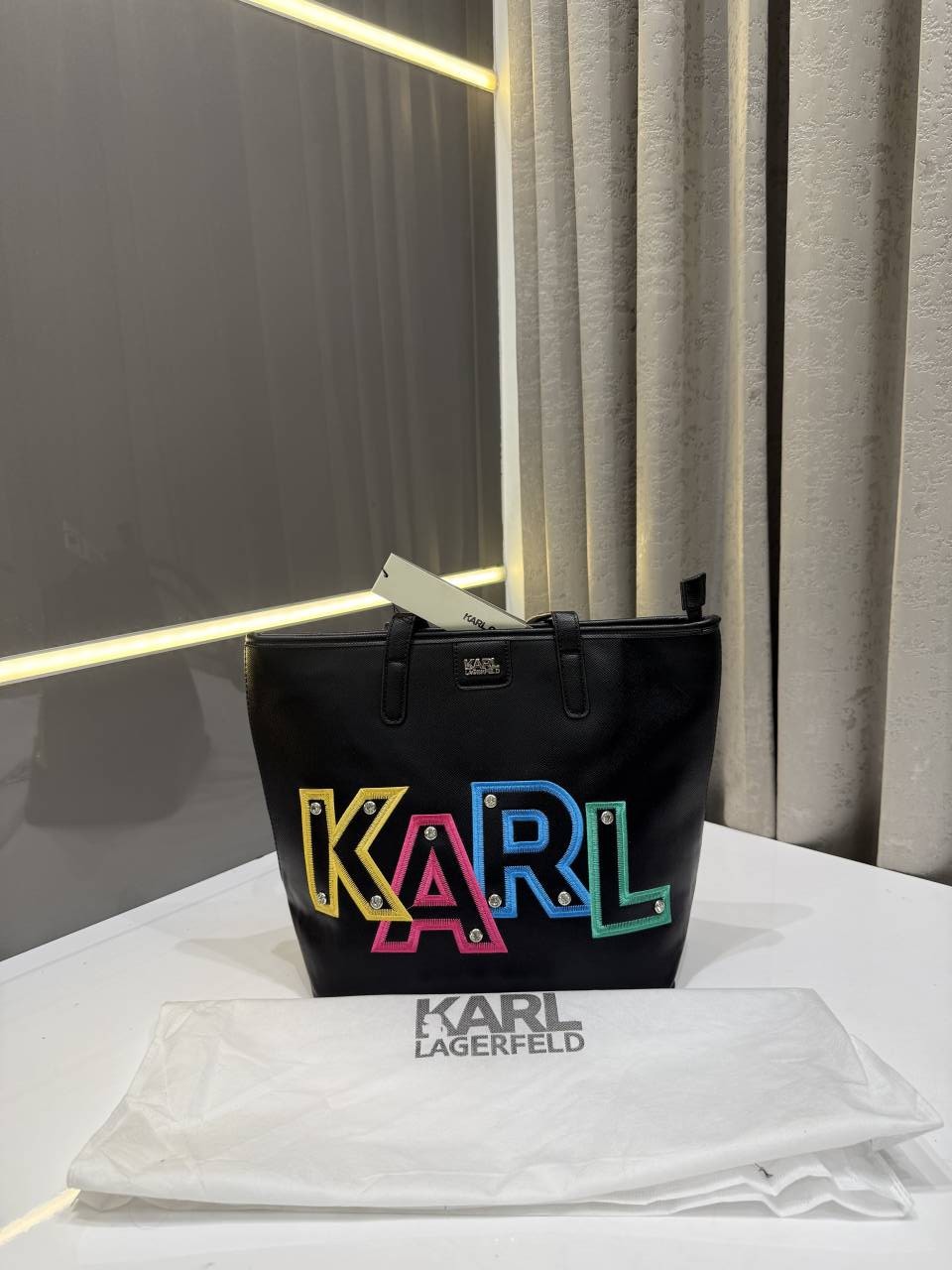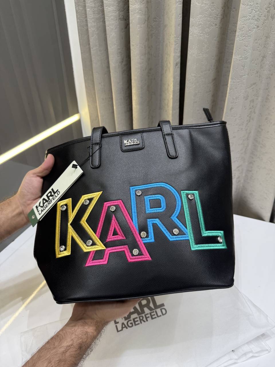 KARL LAGERFIELD MAYBELLE BLACK TOTE BAG WITH MULTI STUDDED WITH DUST BAG