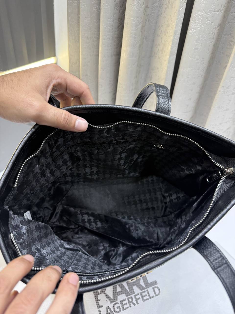 Karl Lagerfeld Textured Ikon Medium Structured Shoulder Bag Black With Dust Bag