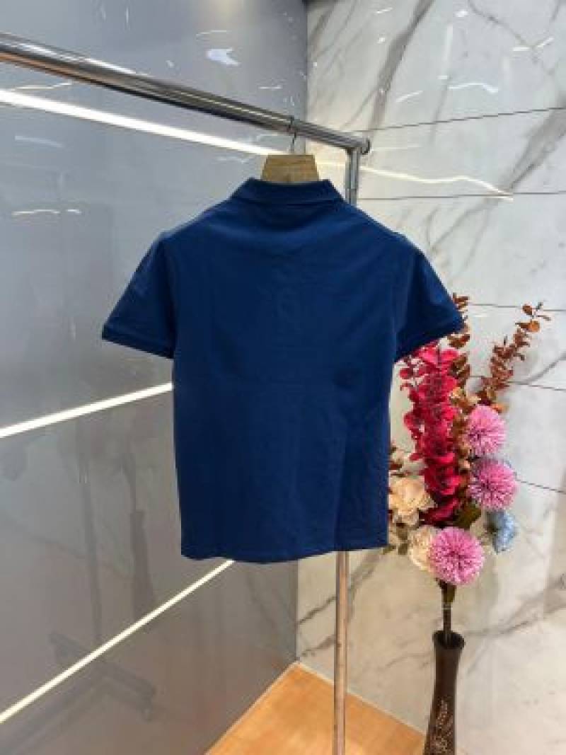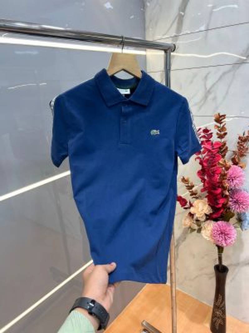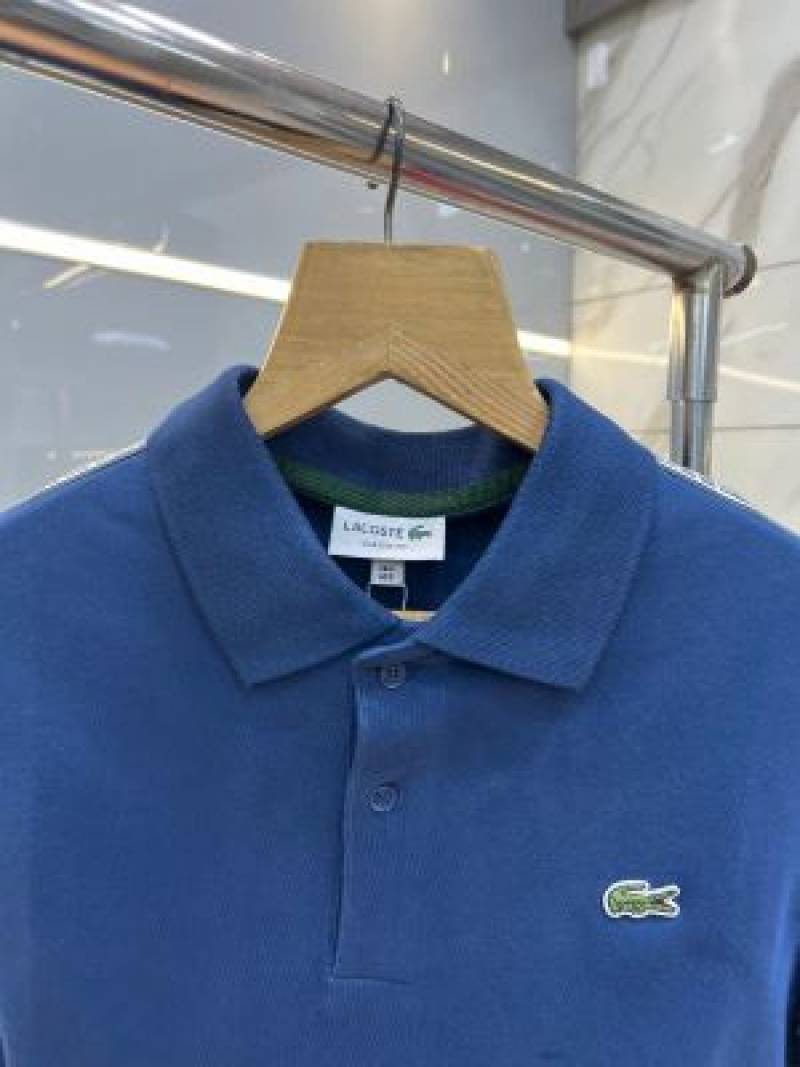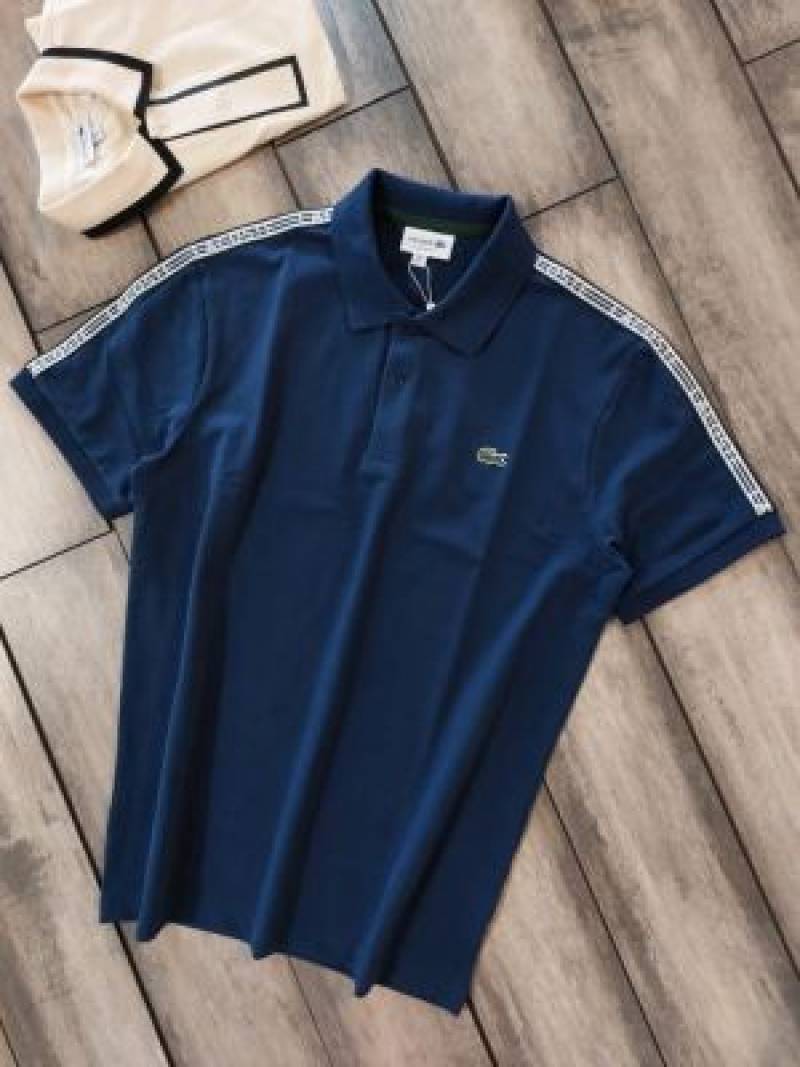 Lacost e Blue Premium Cotton Pique fabric Polo Tshirt with Shoulder Design and Embroidered Logo 3993