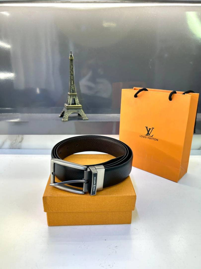 • Calvin_Klein Black Leather Belt With Signature CK Initial Buckle With Box Dust Bag Including Carry Bag (11-1)